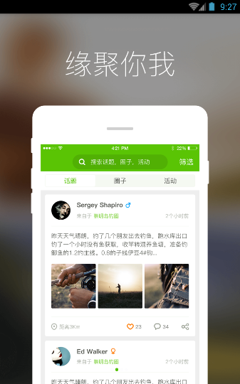 钓道app是由上海钓道网络技术有限公司3位热爱钓鱼的互联网人士共同创建,公司致力于打造最佳服务体验的钓鱼平台。在这里你可以找到适合自己的圈子,志同道合的朋友,专属定制的活动。大家汇聚在一起探讨钓鱼的技巧,分享收获的喜悦。同时也会有各类主题钓鱼比赛和游钓活动,所谓缘聚你我,游钓天下!