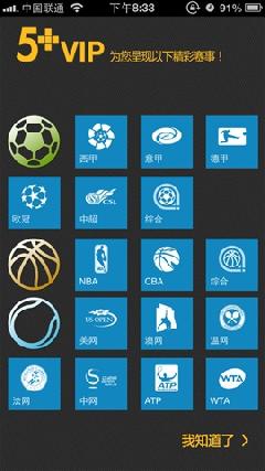 5 VIP 整合央视海量版权赛事资源,囊括足球、篮球、网球等运动的几乎所有重要赛事的比赛视频资源,甚至包括电视台无法全部转播的比赛。